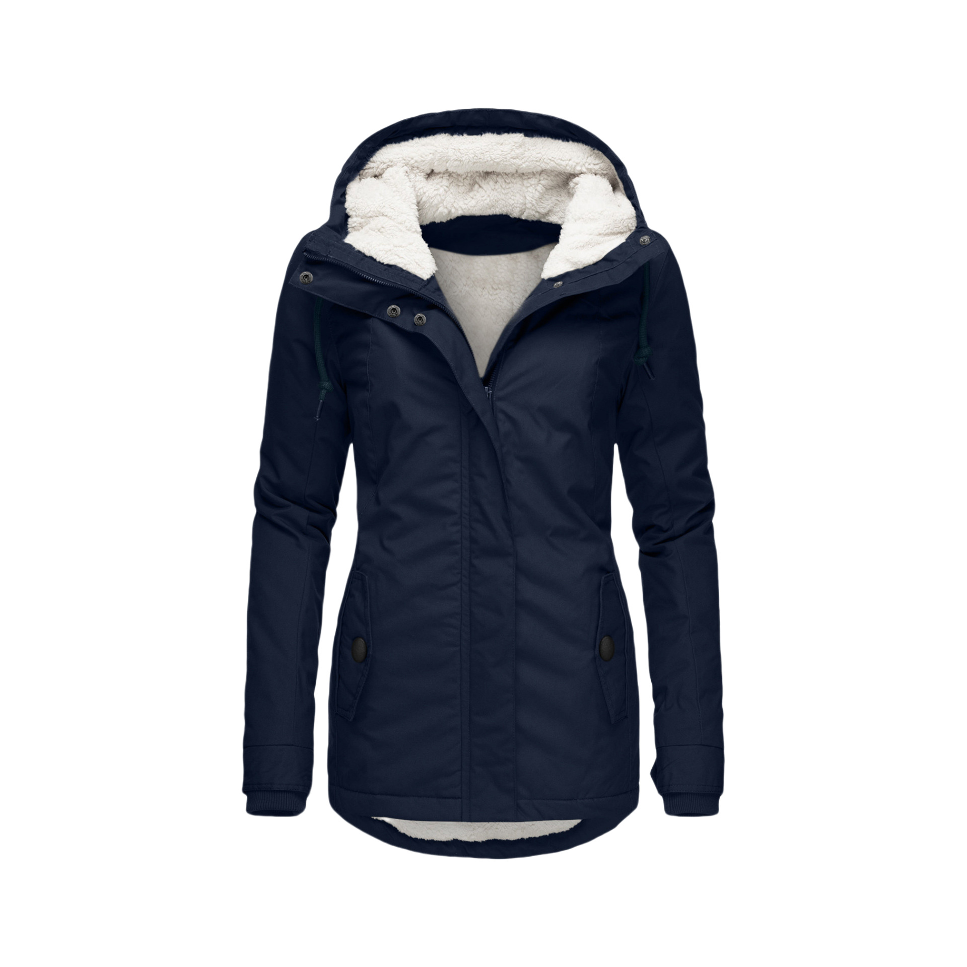 Elegant Design: Medium-length jacket with a hooded collar, perfect for a stylish and elegant look.